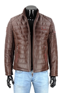 Kurtka skórzana męska pikowana z czerwonymi lamówkami DORJAN