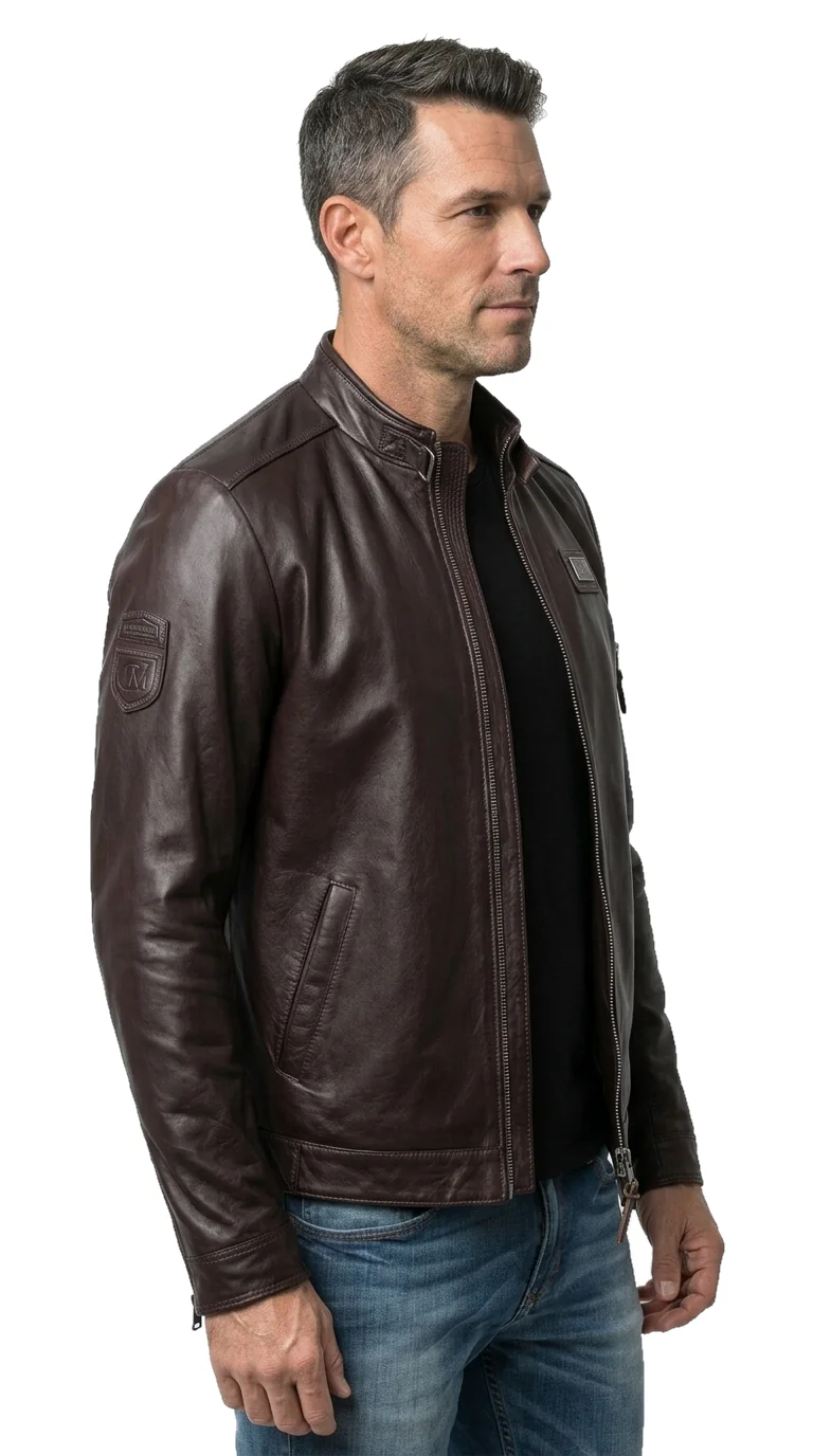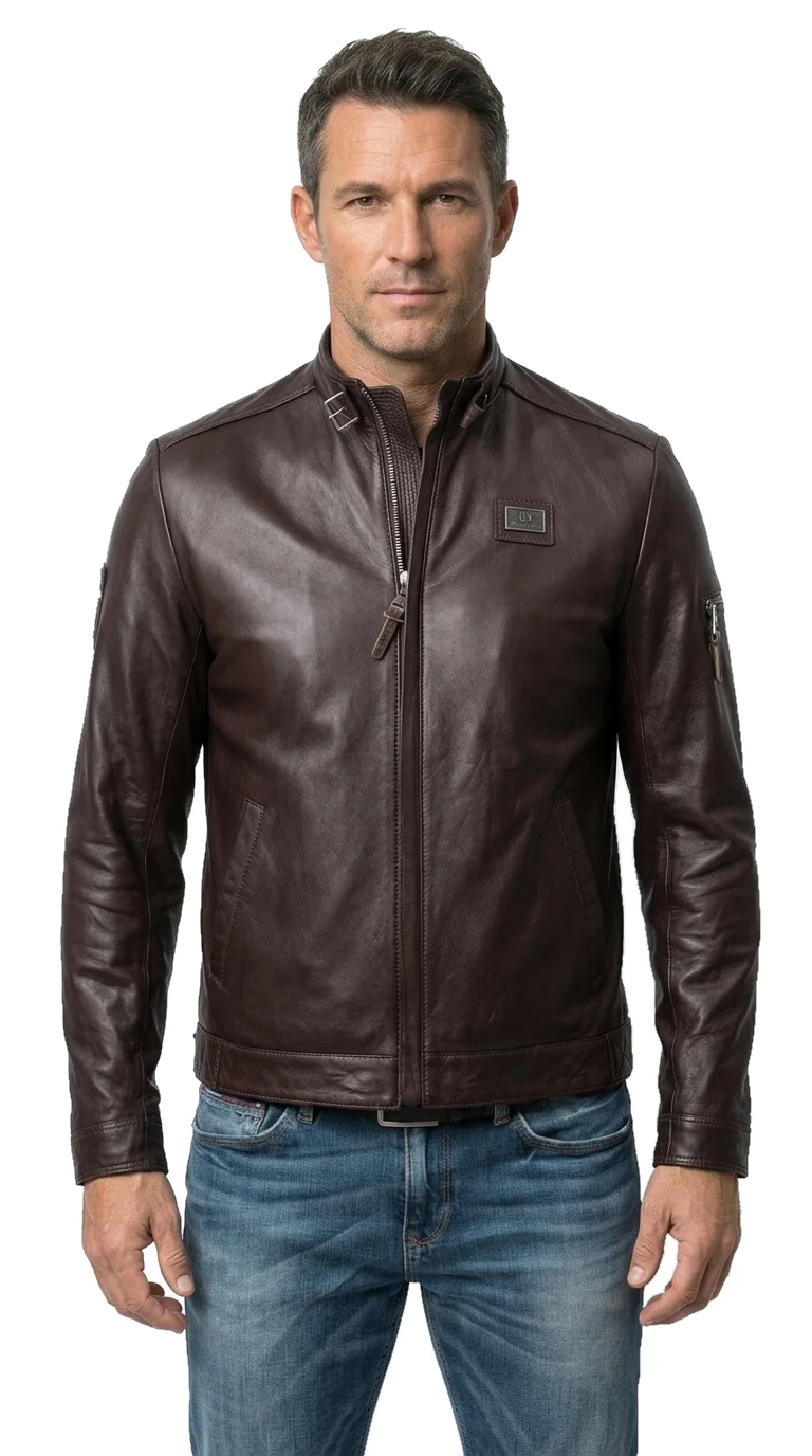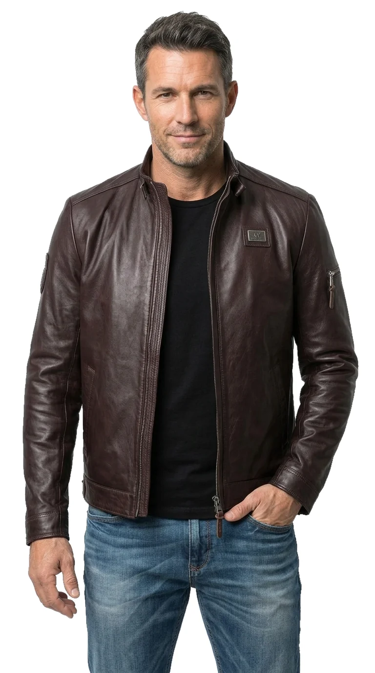 Kurtka skórzana męska w kolorze gorzkiej czekolady DORJAN