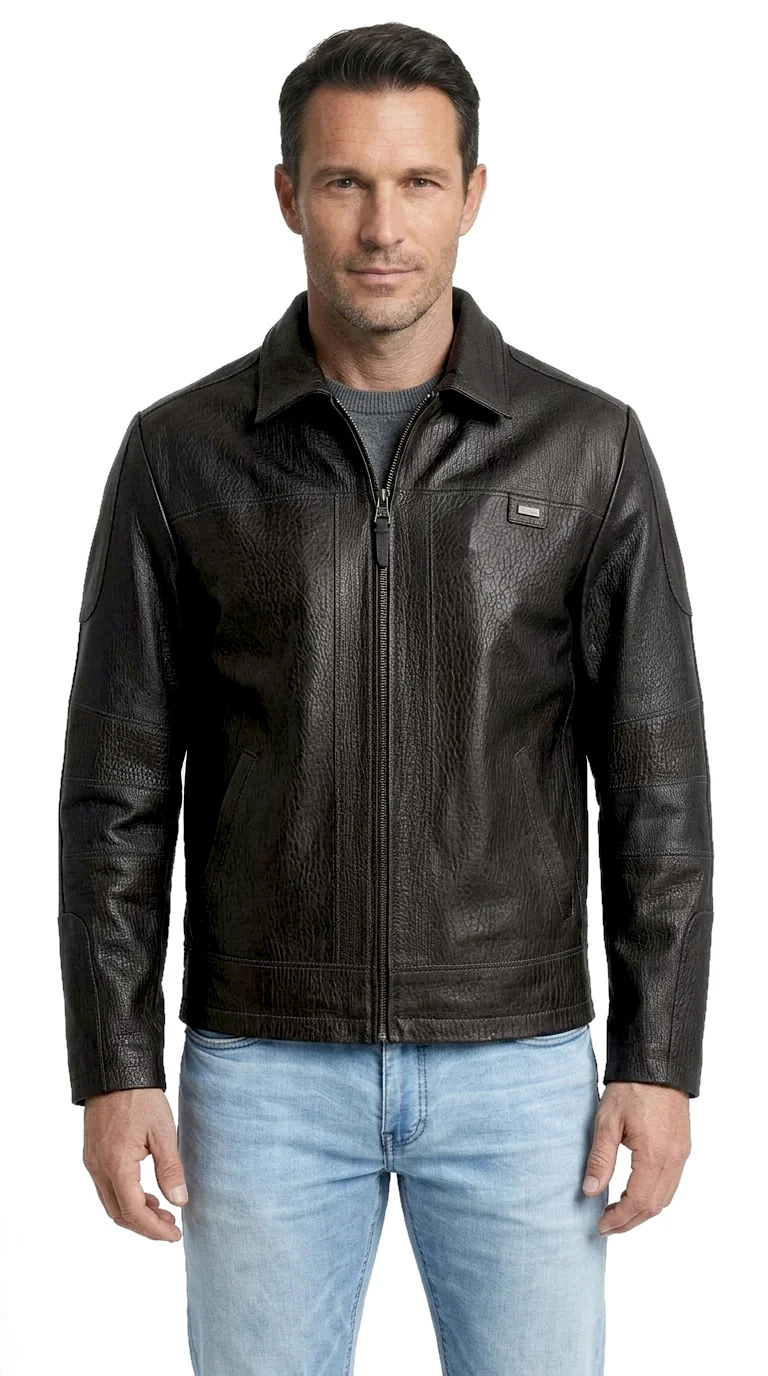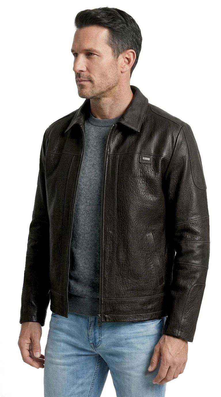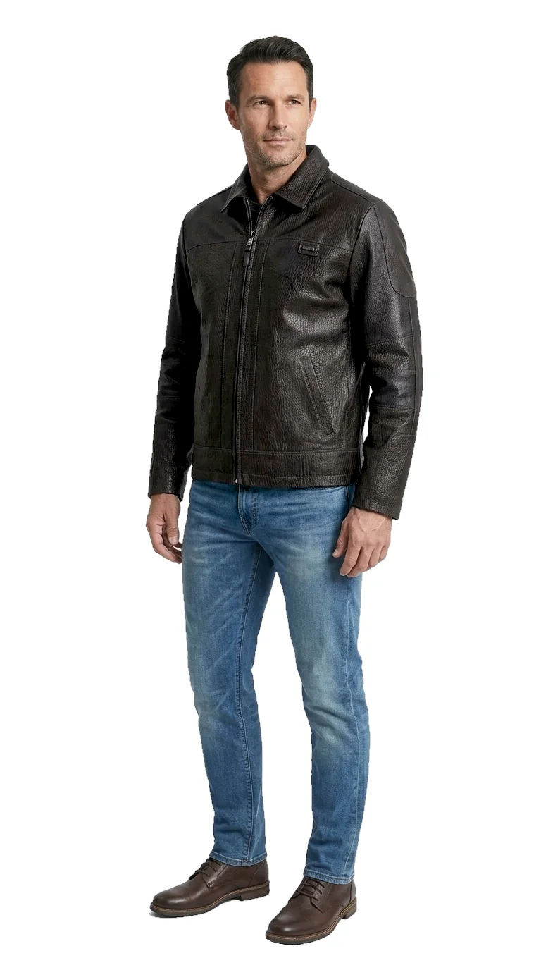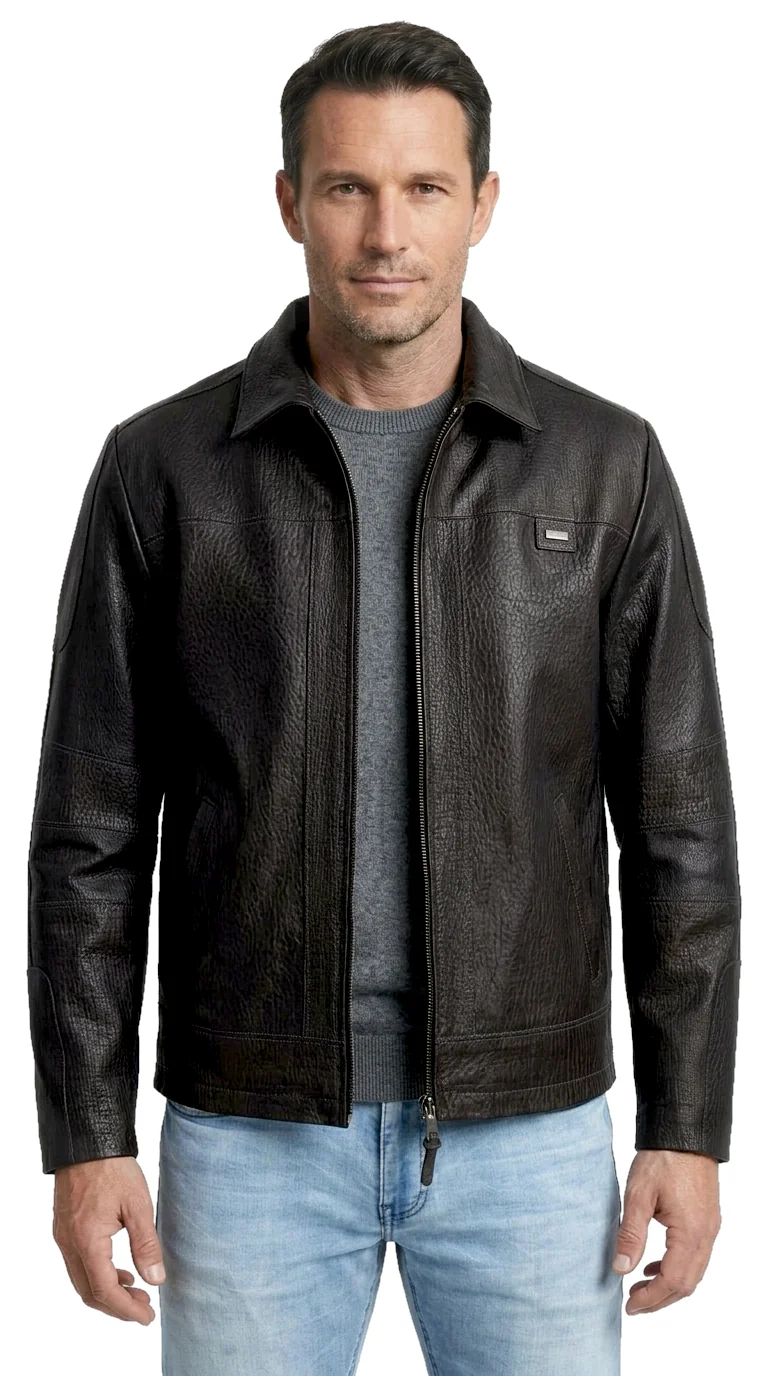 Kurtka skórzana męska w stylu vintage z czarnej skóry DORJAN