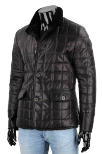 Kurtka skórzana pikowana męska z kożuchem jednorzędowa DORJAN