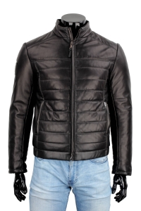 LUC450 - Czarna kurtka skórzana męska pikowana ze ściągaczem DORJAN