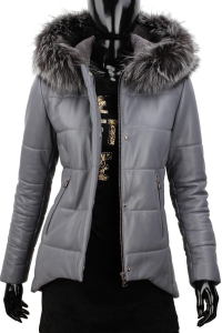 LWA102 - ciepła kurtka skórzana damska z kapturem i futerkiem DORJAN