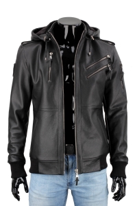 MCH950 - czarna kurtka skórzana męska odpinanym kapturem DORJAN