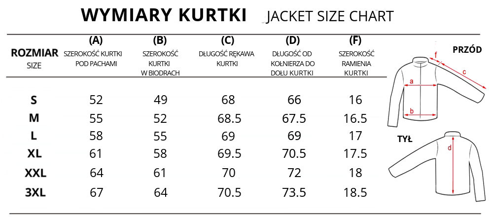 Możliwość dopasowania wymiarów kurtki do indywidualnych potrzeb klienta oraz SZYCIA NA MIARĘ - KLIKNIJ