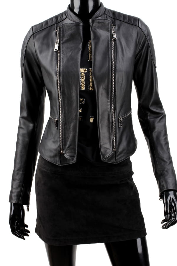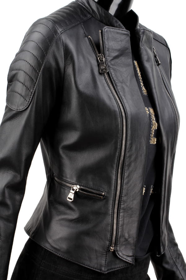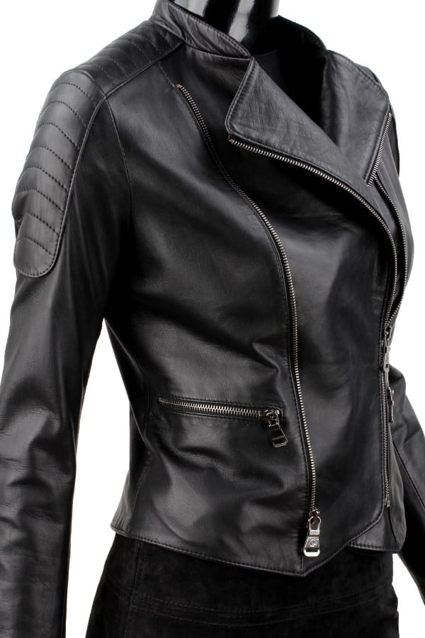 MEL450 - Ramoneska skórzana damska z pikowanymi ramionami DORJAN