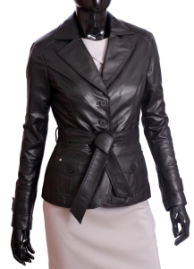 MNA450 - klasyczna marynarka skórzana damska z wiązanym pasem DORJAN