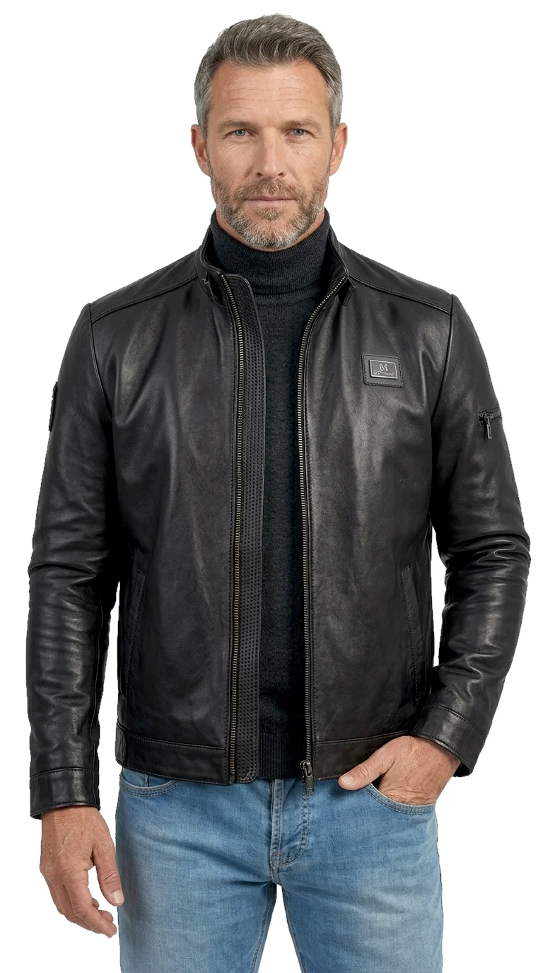 Męska kurtka skórzana z czarnej naturalnej skóry licowej DORJAN