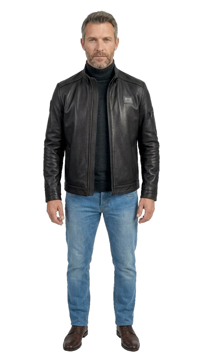 Model RAF450ML firmy DORJAN to casualowa męska kurtka skórzana, łącząca minimalistyczny design z wyrazistym charakterem. Wykonana z najwyższej jakości czarnej skóry owczej, zachwyca swoją miękkością, trwałością i eleganckim wykończeniem. Prosty, dopasowany krój z niewielką ilością dodatków sprawia, że kurtka jest niezwykle uniwersalna i łatwa do stylizacji. Subtelne detale, takie jak stójka zapinana na klamrę czy praktyczna kieszeń na rękawie, dodają jej indywidualnego charakteru. Ergonomiczny fason podkreśla atuty męskiej sylwetki, zapewniając jednocześnie komfort noszenia. RAF450 to model, który świetnie odnajdzie się zarówno w casualowych, jak i bardziej imprezowych stylizacjach. Dzięki swojej wszechstronności pozwala na pełną swobodę w doborze dodatków, dopasowując się do różnych okazji i stylu właściciela.
