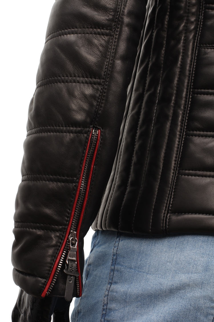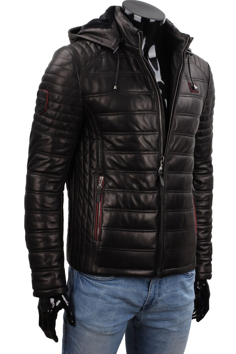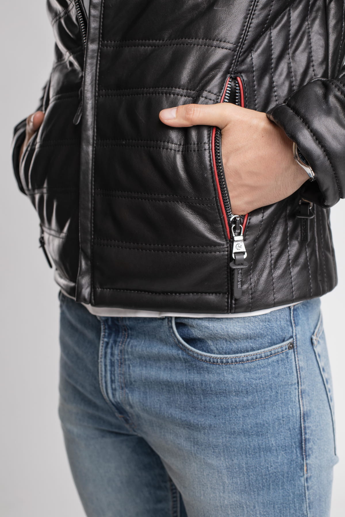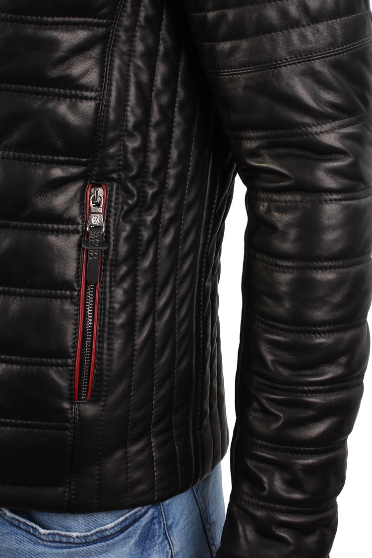 NIKM453 - Praktyczna kurtka skórzana męska z czarnej skóry DORJAN