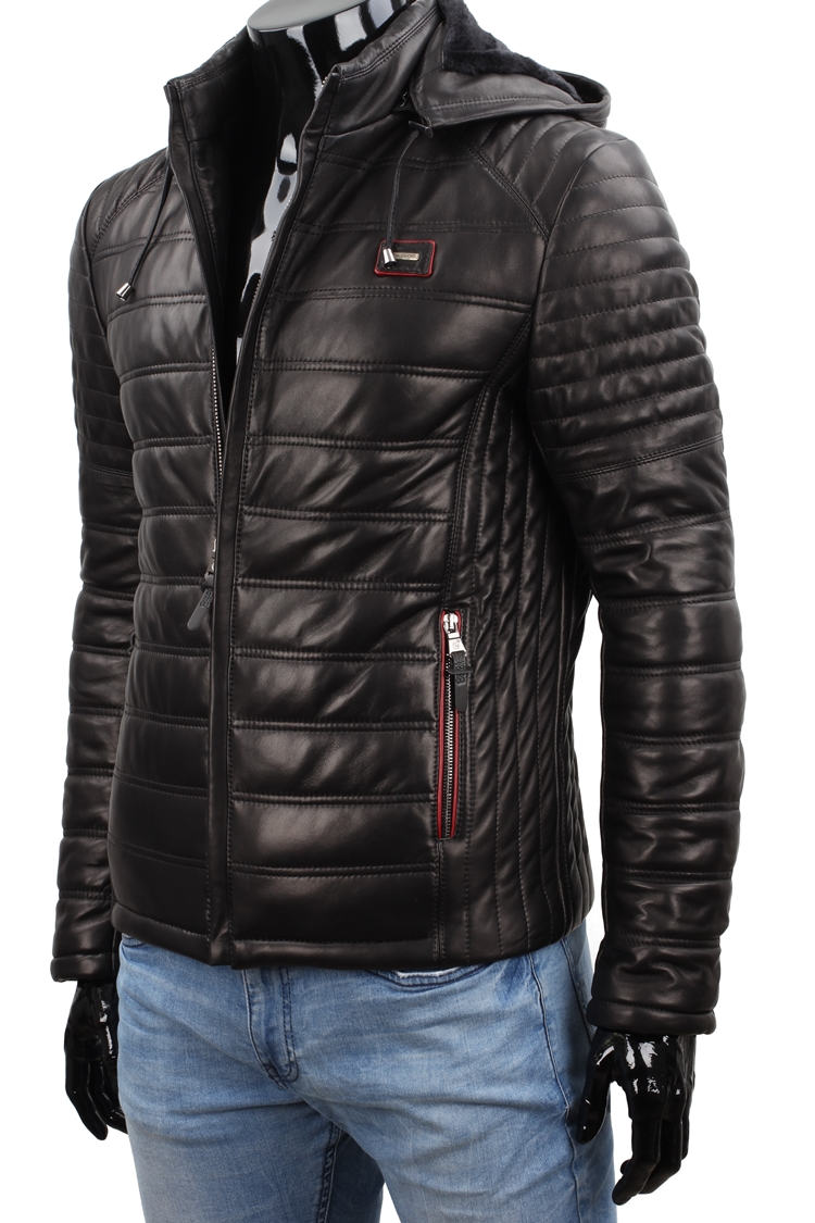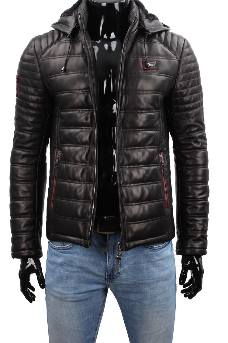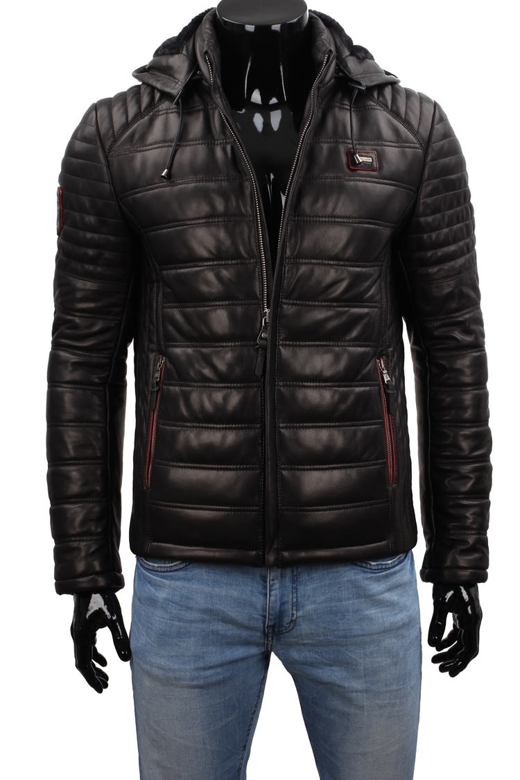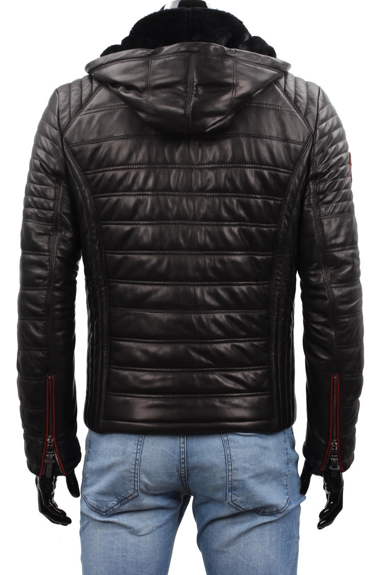 NIKM453 - Praktyczna kurtka skórzana męska z czarnej skóry DORJAN