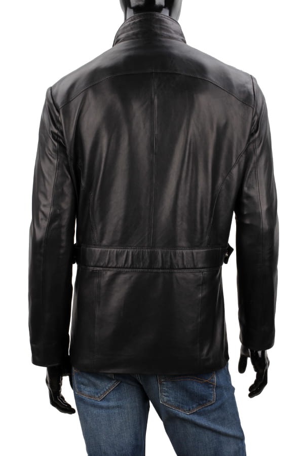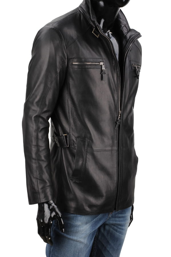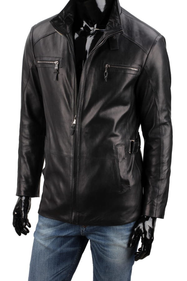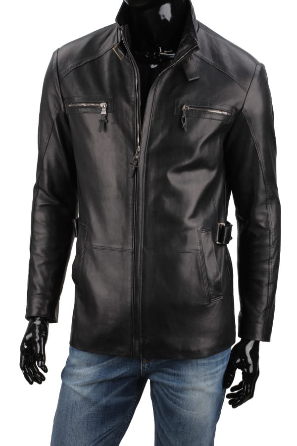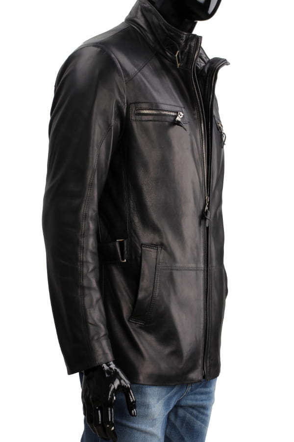 NRN450 - klasyczna długa kurtka skórzana z czarnej skóry DORJAN