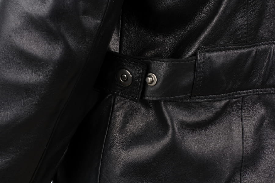 Model NRN450 firmy DORJAN to długa kurtka skórzana o wszechstronnym zastosowaniu, wykonana z wysokogatunkowej naturalnej skóry owczej w zawsze modnym czarnym kolorze. Klasyczny fason został zmodernizowany tak, aby był jak najbardziej uniwersalny. Stójka zapinana na klamrę, pas w talii oraz srebrne metalowe zamki nadają całości charakteru. Dzięki swojej długości kurtka doskonale sprawdzi się w wietrzne, chłodniejsze dni. W ochronie przed nieprzyjemną pogodą, pomaga także wysoka stójka, która świetnie osłania szyję. Możliwość doszycia odpinanego ocieplenia znacznie zwiększa użyteczność projektu i sprawia, że można użytkować ten model praktycznie przez cały rok.