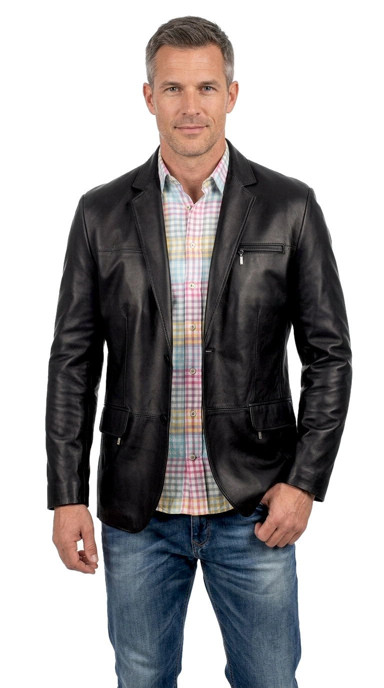 Najwyższej jakości marynarka skórzana męska czarna - rozmiar XL - Wyprzedaż DORJAN