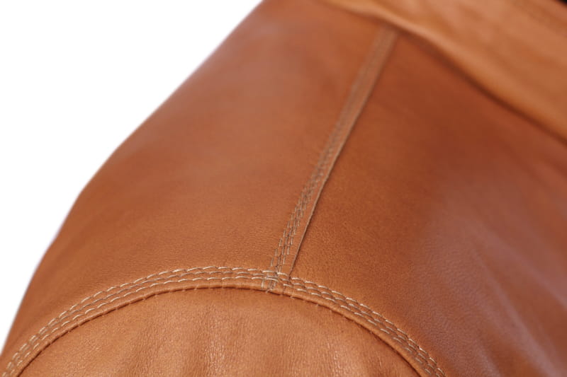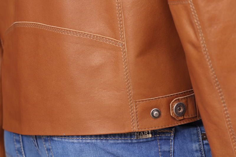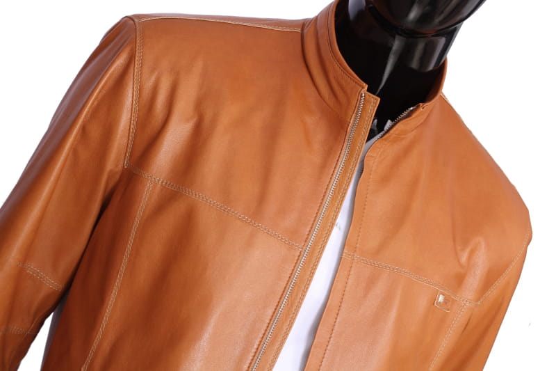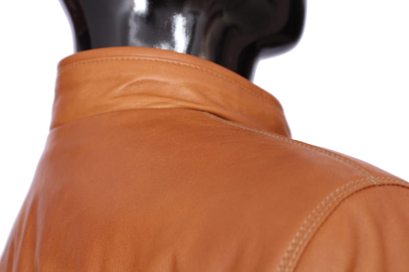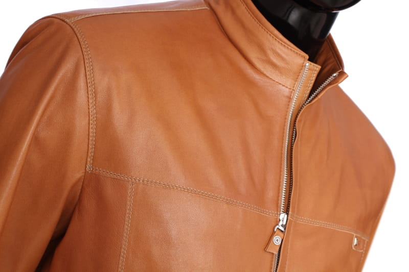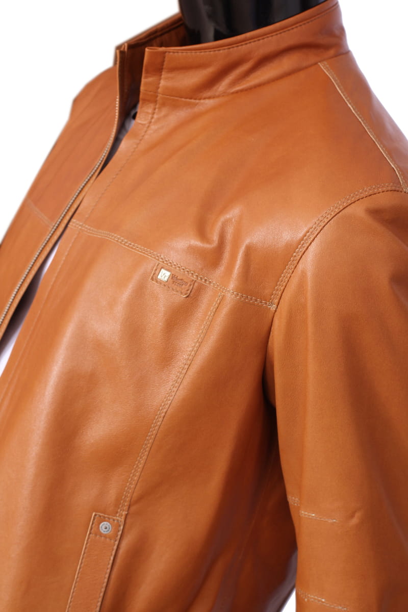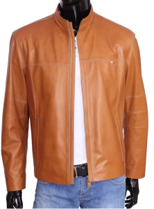OLF080 - Skórzana kurtka męska w jasnym camelowym kolorze DORJAN