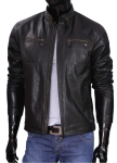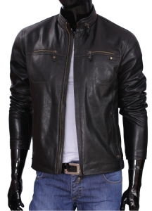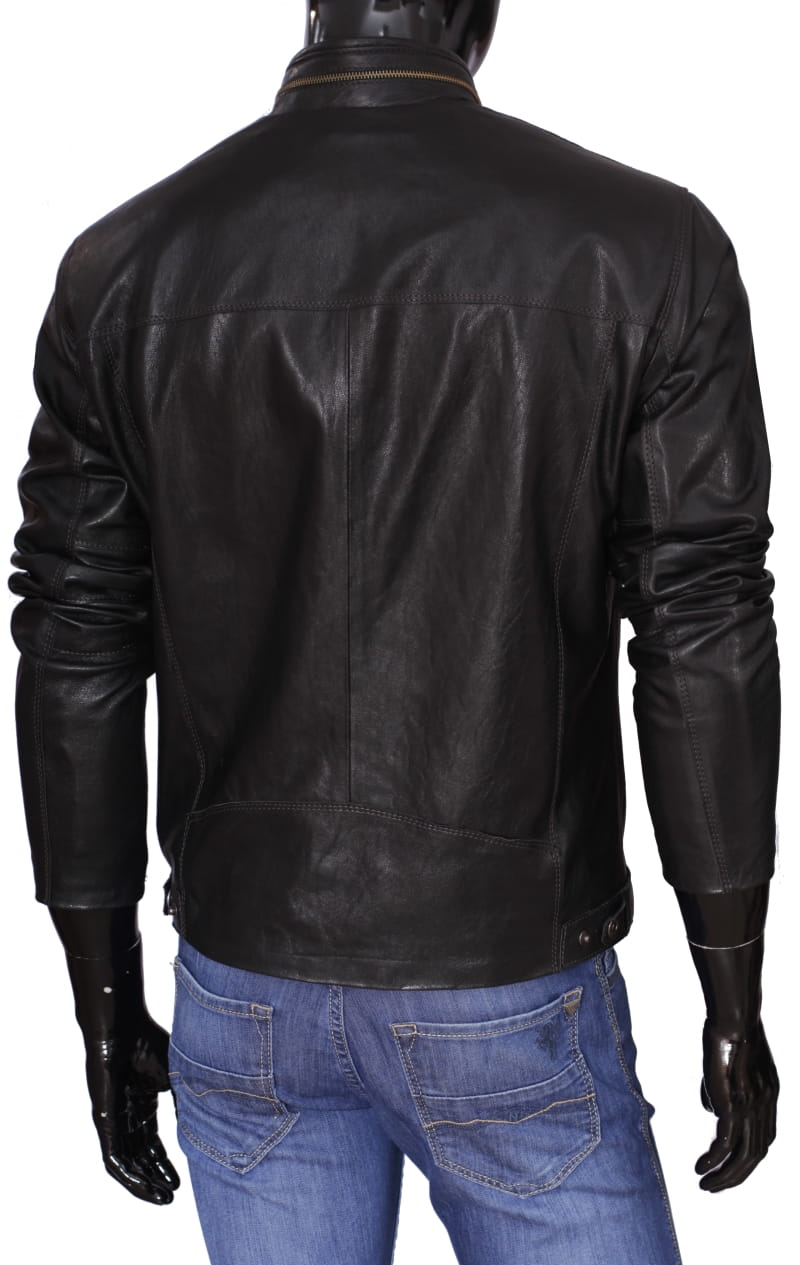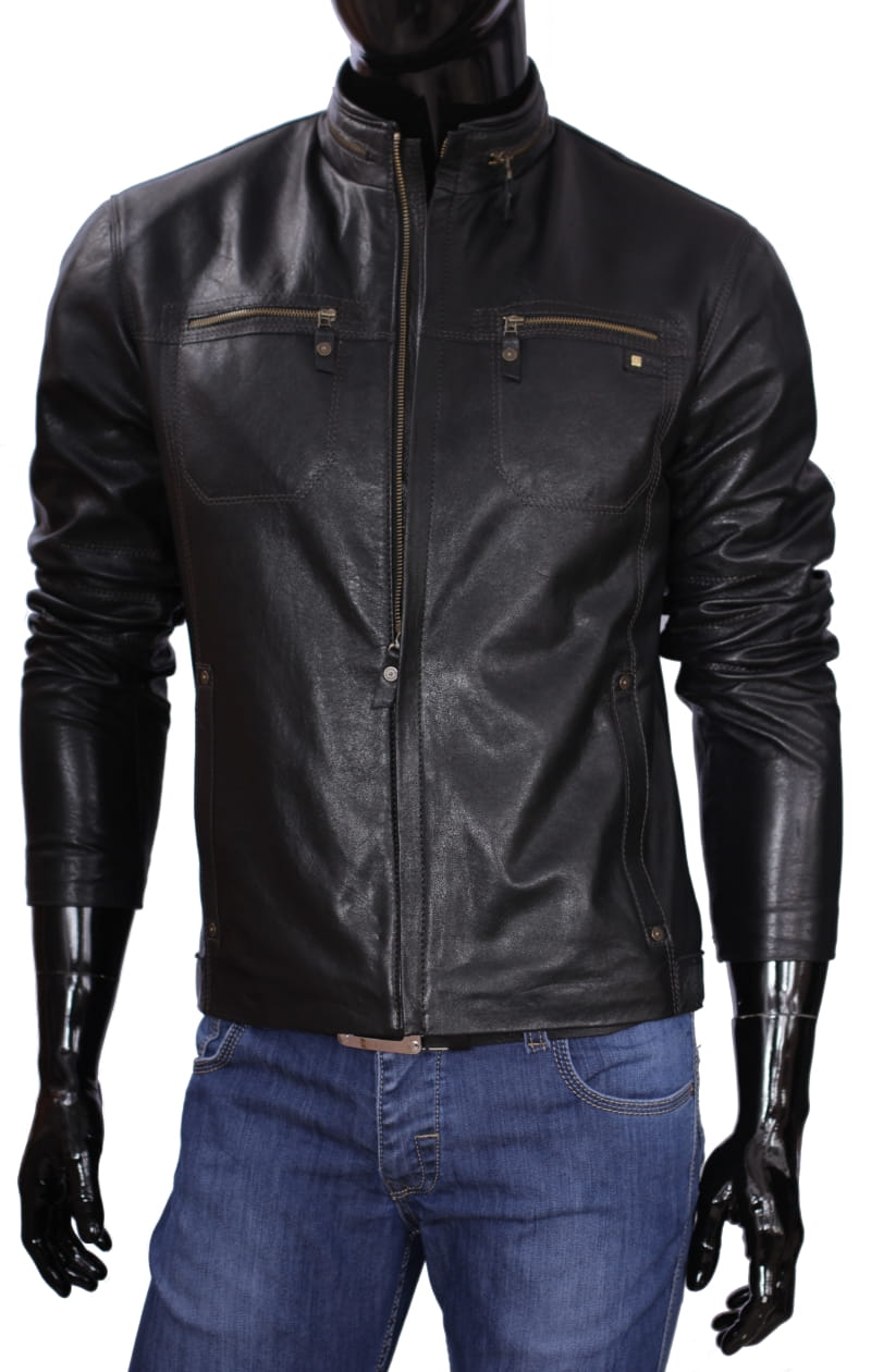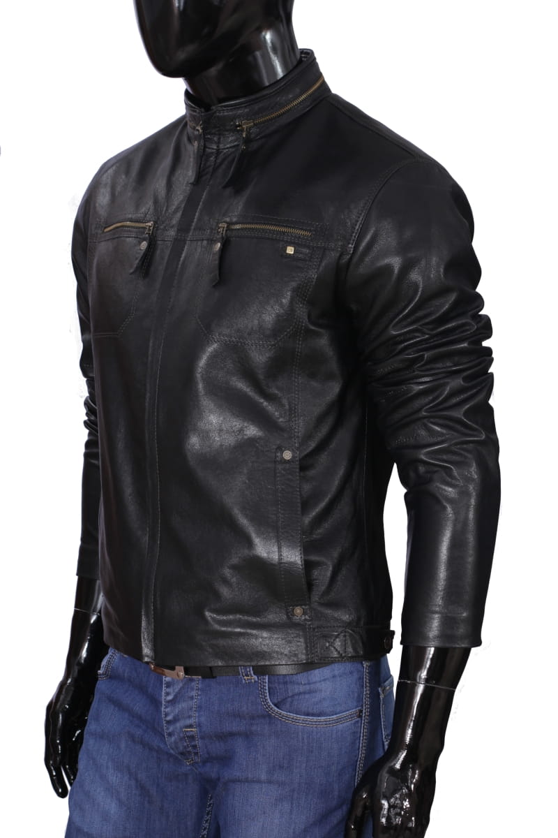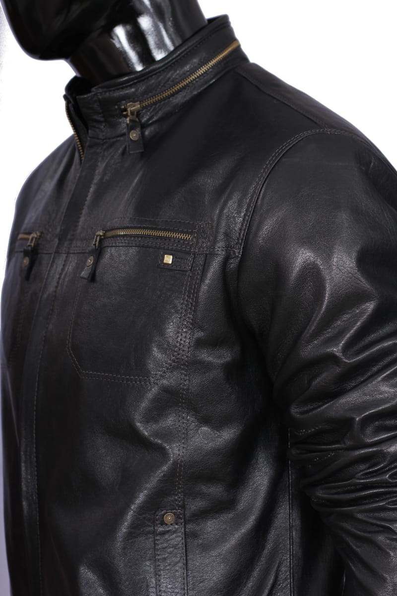 OLG950_1 - Klasyczna czarna kurtka męska skórzana ze stójką DORJAN
