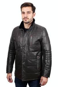 OUT176 - XXL - Długa i ciepła kurtka skórzana męska na kożuchu DORJAN Outlet