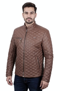 OUT199 - L - Kurtka męska skórzana pikowana w romby DORJAN Outlet
