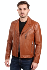 OUT204 - M - Męska ramoneska skórzana z brązowej skóry DORJAN Outlet