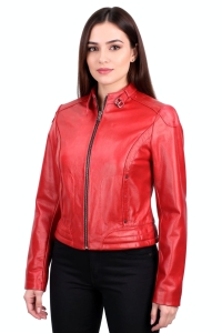 OUT205 - XS - Czerwona kurtka skórzana damska DORJAN Outlet