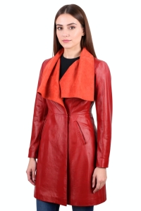 OUT209 - XS - Czerwony płaszcz skórzany damski DORJAN Outlet