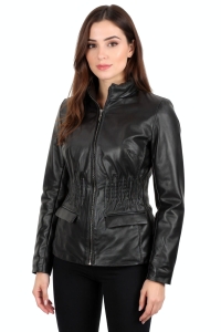 OUT210 - XS - Czarna kurtka skórzana damska ocieplana DORJAN Outlet