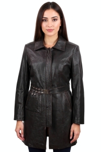 OUT214 - S - Brązowy płaszcz skórzany damski z podpinką DORJAN Outlet