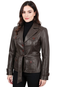 OUT224 - XS - Brązowa marynarka skórzana damska DORJAN Outlet