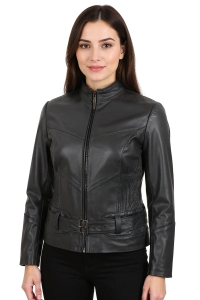 OUT236 - M - Kurtka skórzana damska w stylu biker DORJAN Outlet