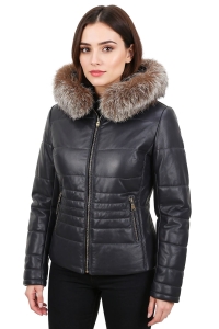 OUT242 - XS - Pikowana kurtka skórzana damska z kapturem DORJAN Outlet
