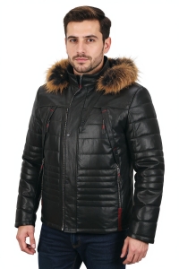 OUT244 - L - Pikowana kurtka skórzana męska z kapturem DORJAN Outlet