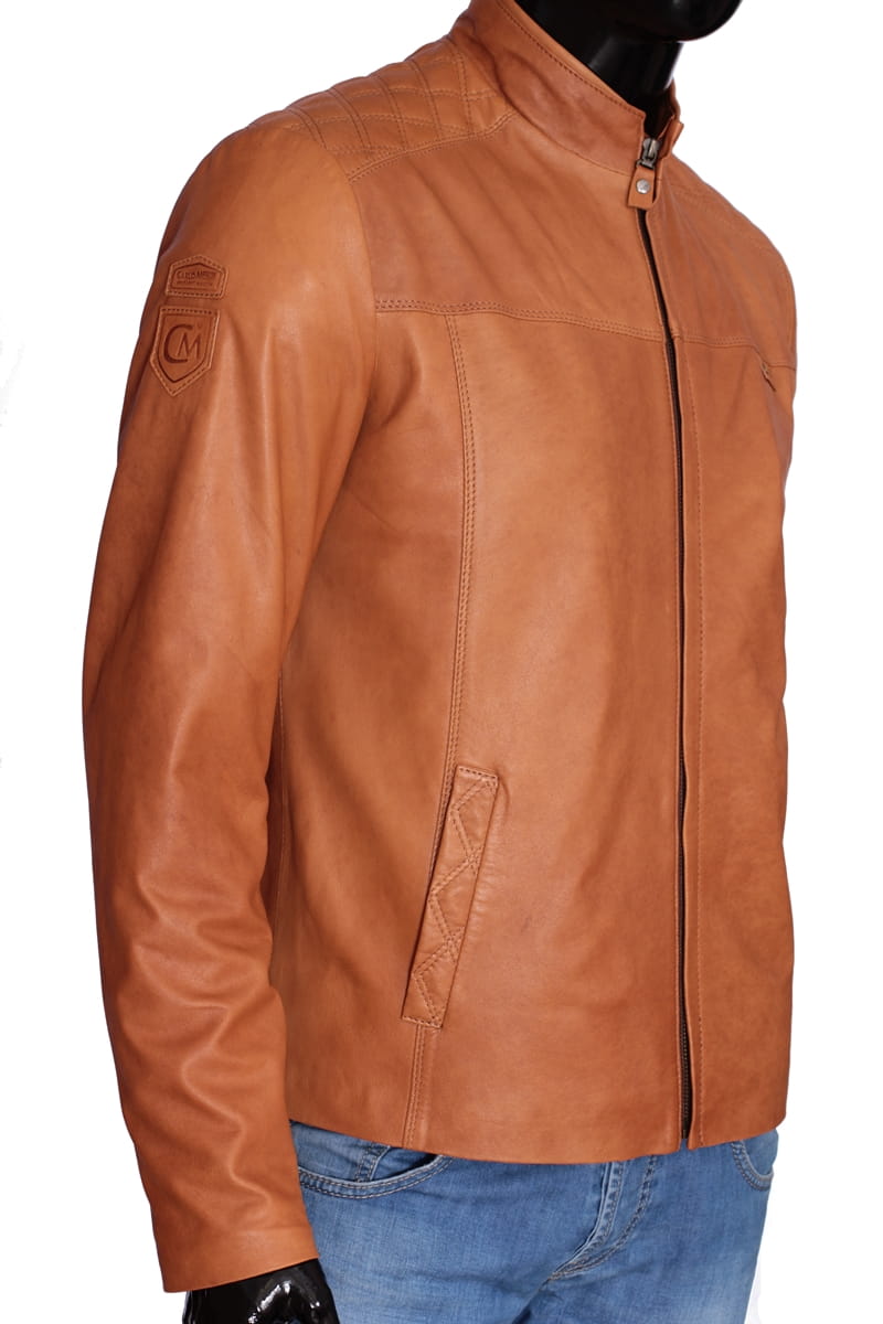 PIK116 - Kurtka skórzana męska ze skóry owczej w kolorze camel DORJAN