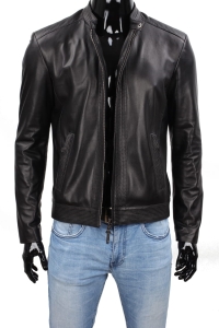 PIT450 - Lekka kurtka skórzana męska z przeszyciami DORJAN