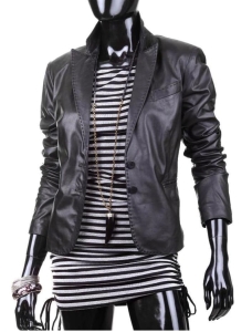 PLA830 - czarna marynarka skórzana damska zapinana na guziki DORJAN