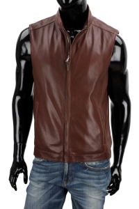 PRK122 - Brązowa kamizelka skórzana męska ze skóry owczej DORJAN
