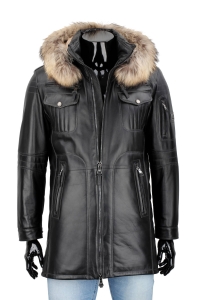 PTRD450 - Długa ocieplana kurtka skórzana męska z kapturem DORJAN