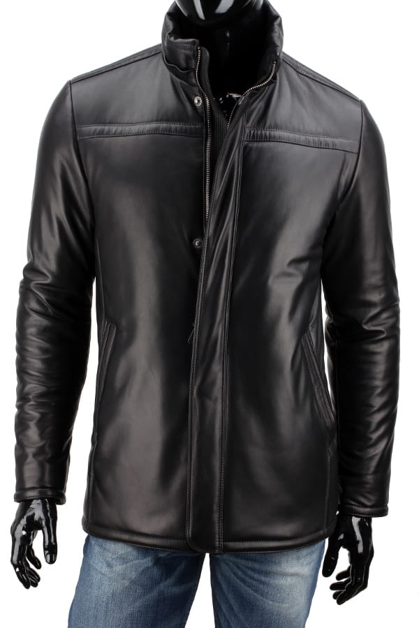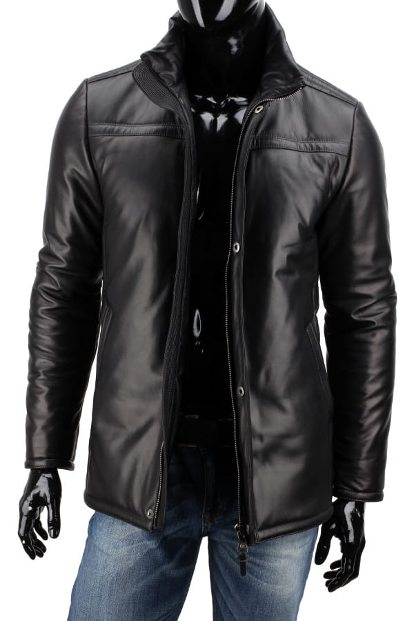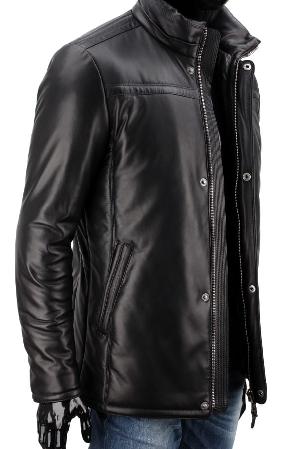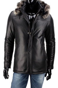 PTRL450 - Długa elegancka kurtka skórzana męska ocieplana DORJAN