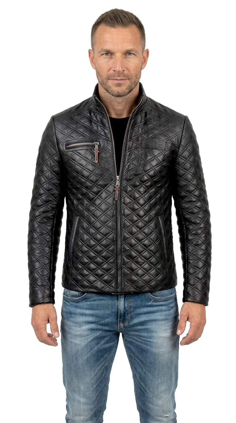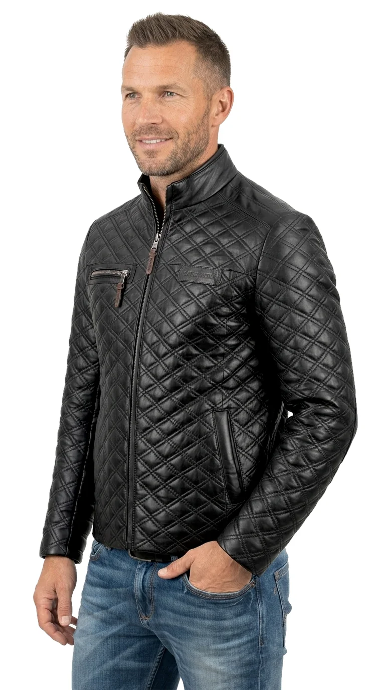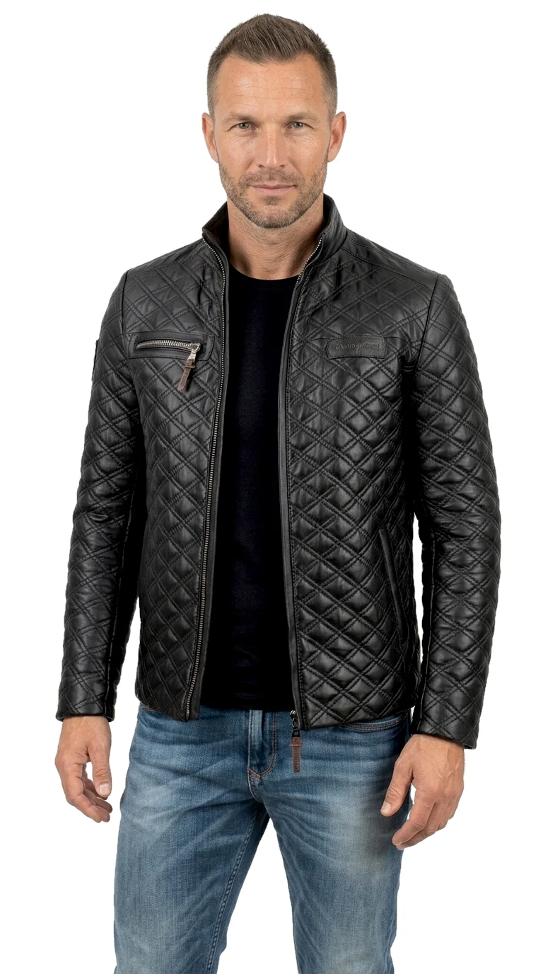 Model ARM450_3ML firmy DORJAN to męska, pikowana kurtka skórzana w klasycznej czerni, uszyta z najwyższej jakości licowej skóry owczej. Dzięki zastosowaniu technologii ocieplenia Thermo Fleece, kurtka zapewnia optymalną izolację termiczną, pozostając jednocześnie lekką, wygodną i niekrępującą ruchów. Charakterystyczne, gęste przeszycia w romby nadają jej nowoczesnego wyglądu i przywołują stylistykę kurtek motocyklowych. Ten model to idealna propozycja dla aktywnych mężczyzn, którzy cenią sobie jakość, precyzję wykonania oraz wyrazisty, zdecydowany styl.