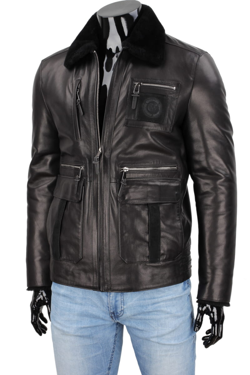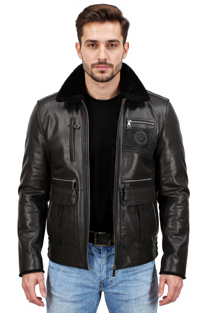Pilotka skórzana męska z futrem na kołnierzu - Rozmiar L - Wyprzedaż DORJAN
