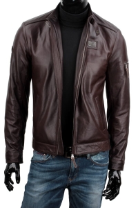 RAFA124A - skórzana kurtka w kolorze ciemnej gorzkiej czekolady DORJAN