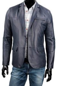 RLF074 - Stylowa marynarka skórzana męska z niebieskiej skóry DORJAN