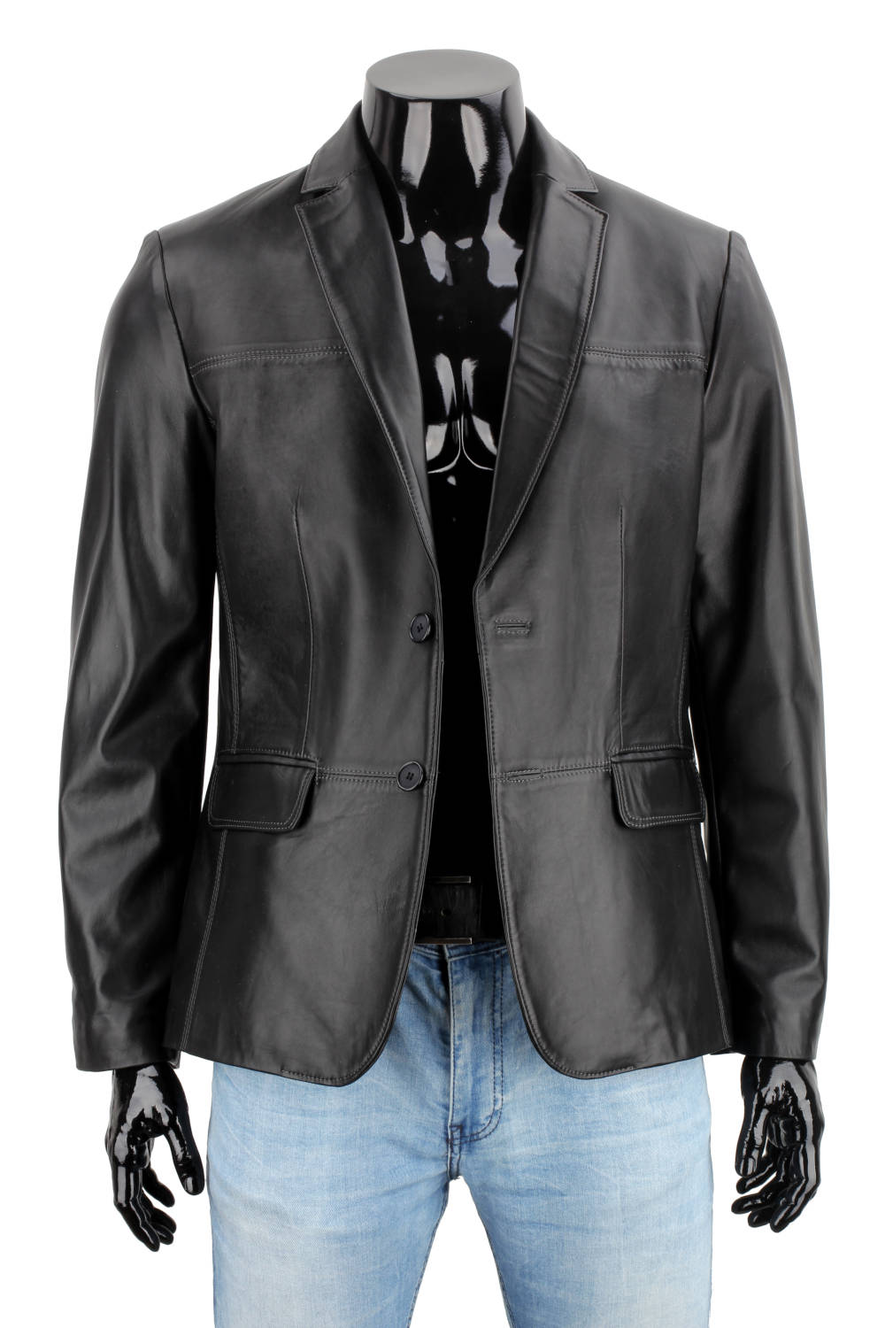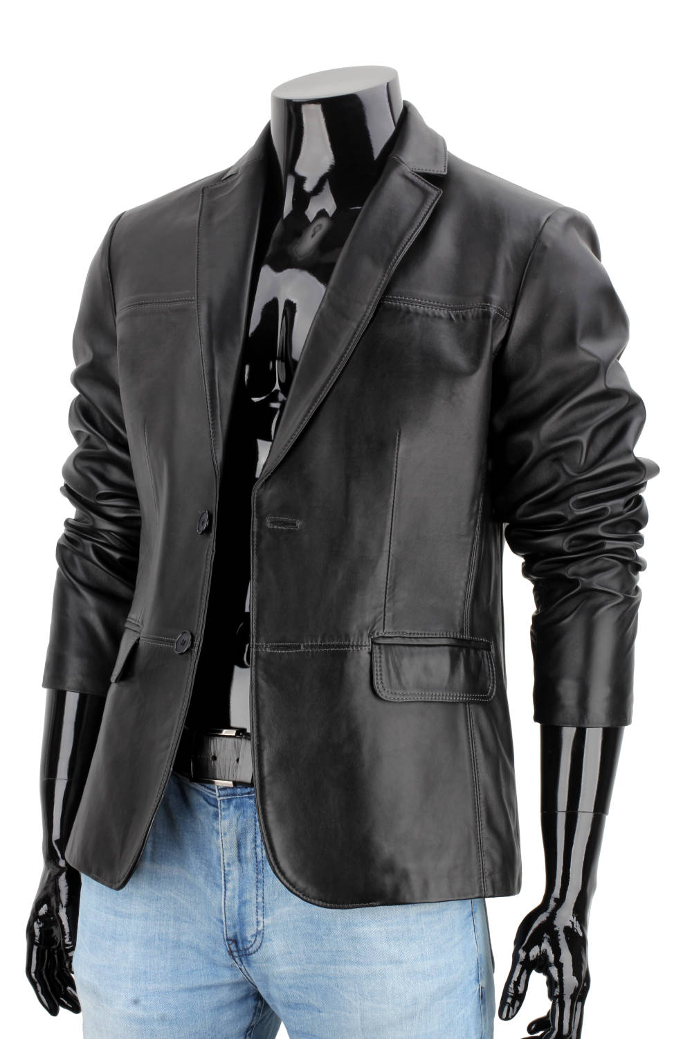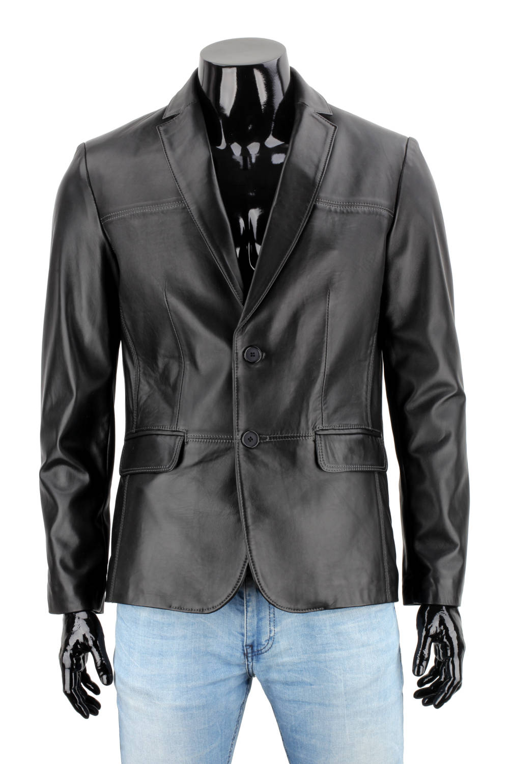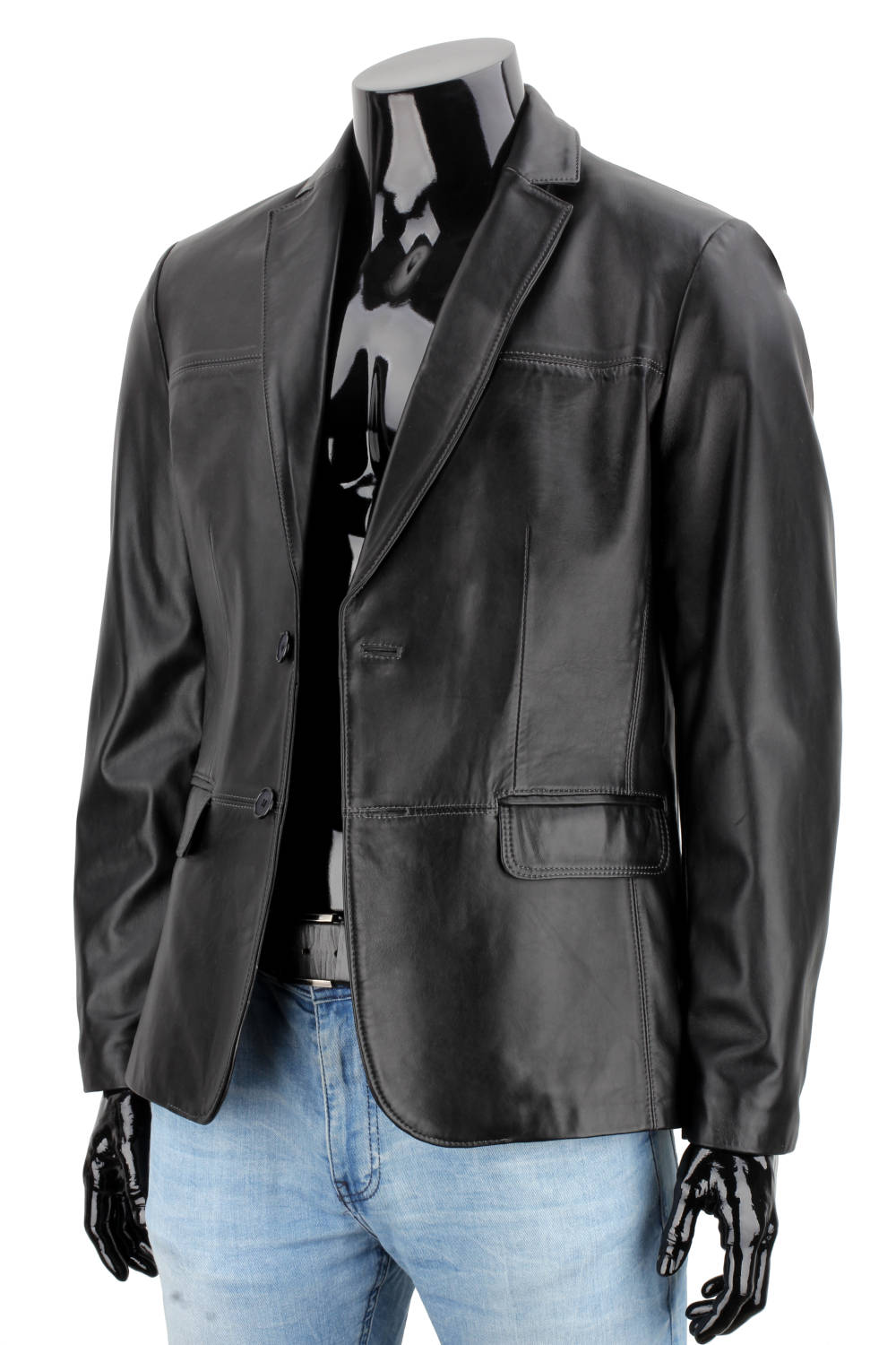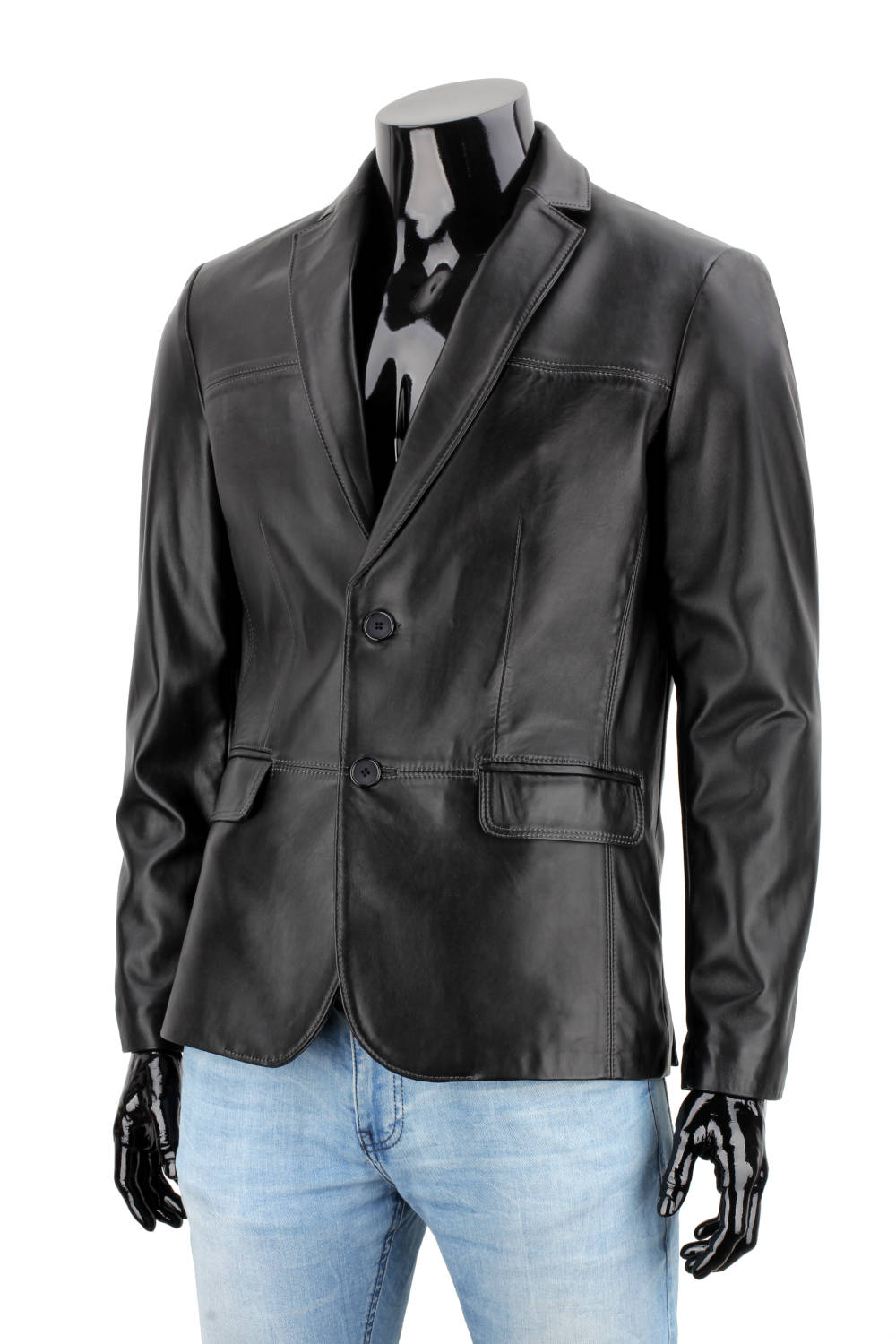 RLF450N - Casualowa marynarka skórzana męska z czarnej skóry DORJAN