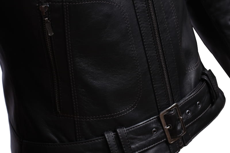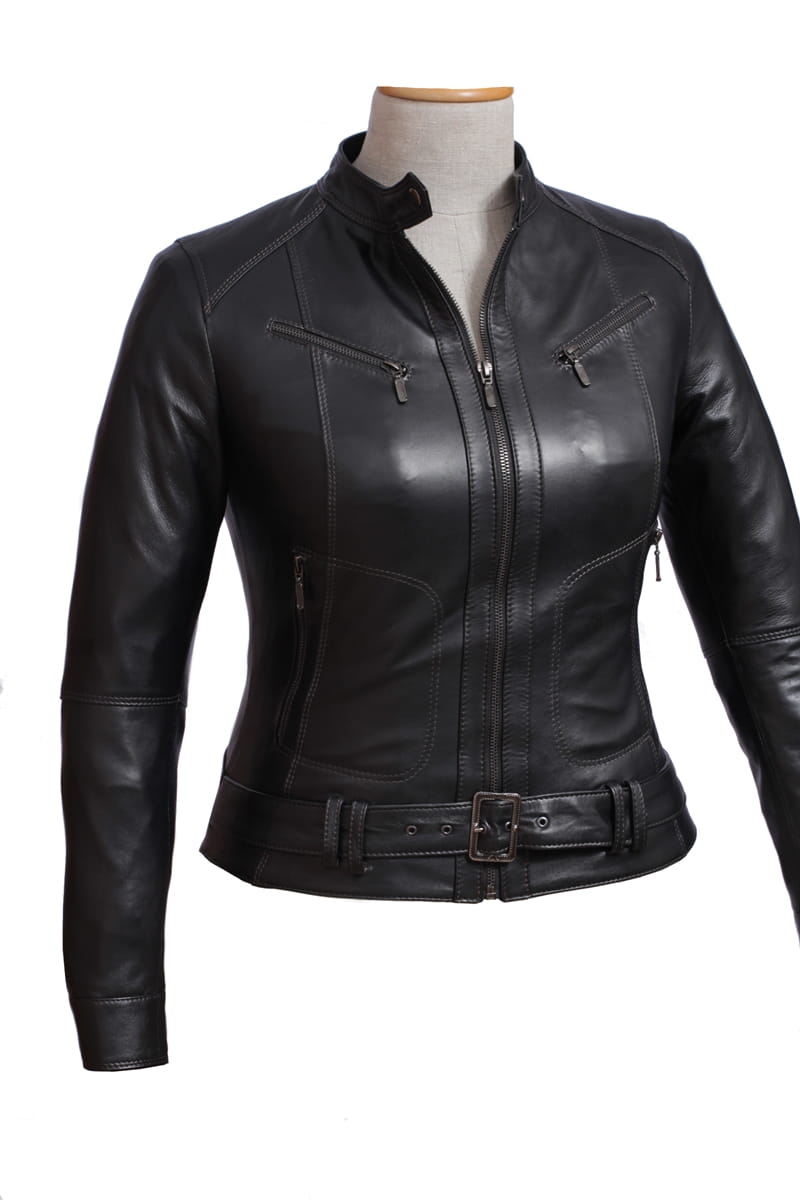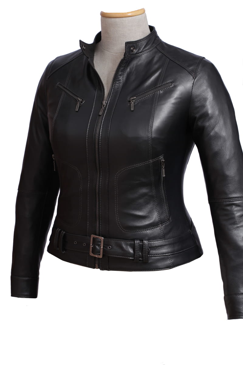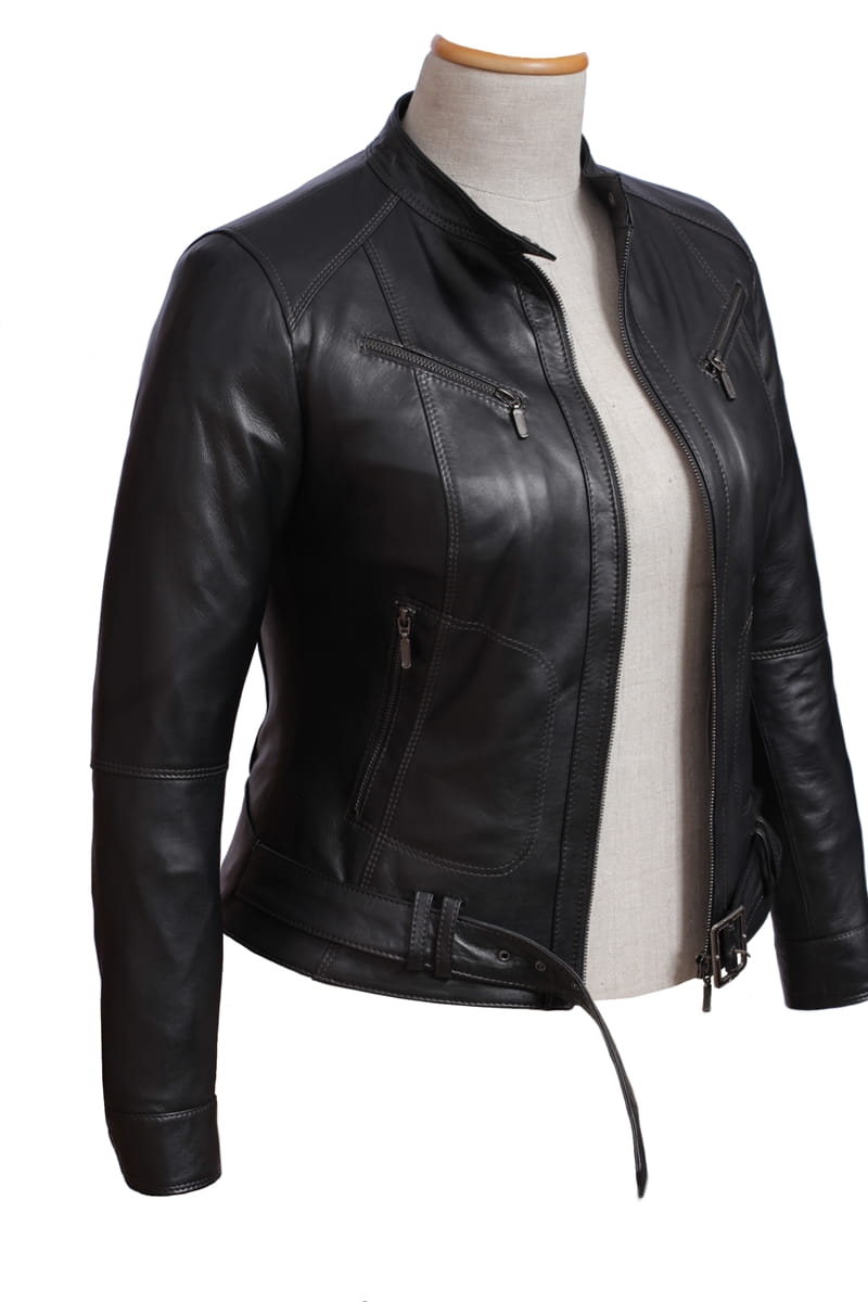 SAR450 - czarna damska kurtka skórzana z paskiem na klamrę DORJAN