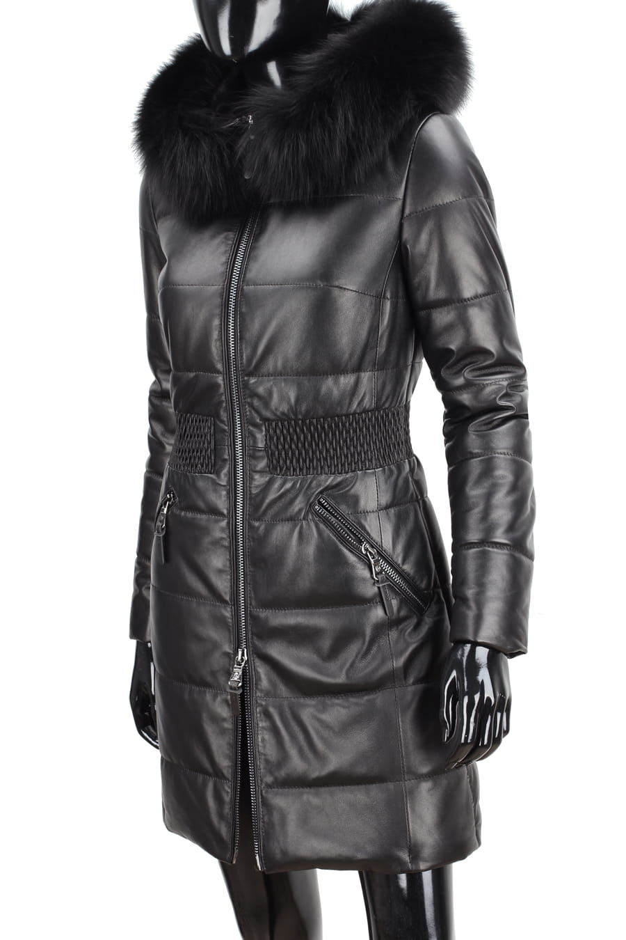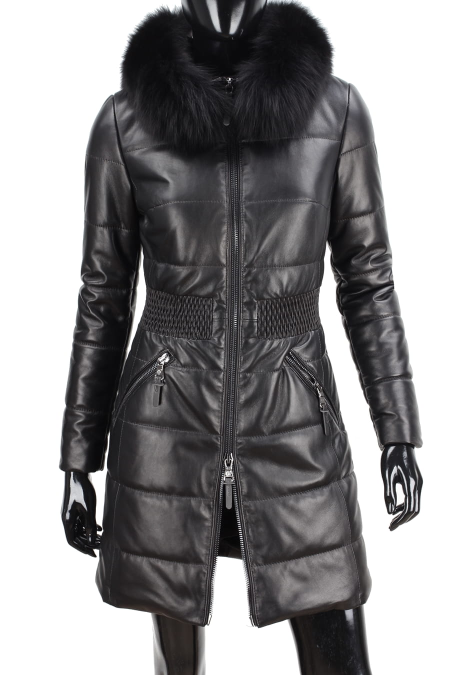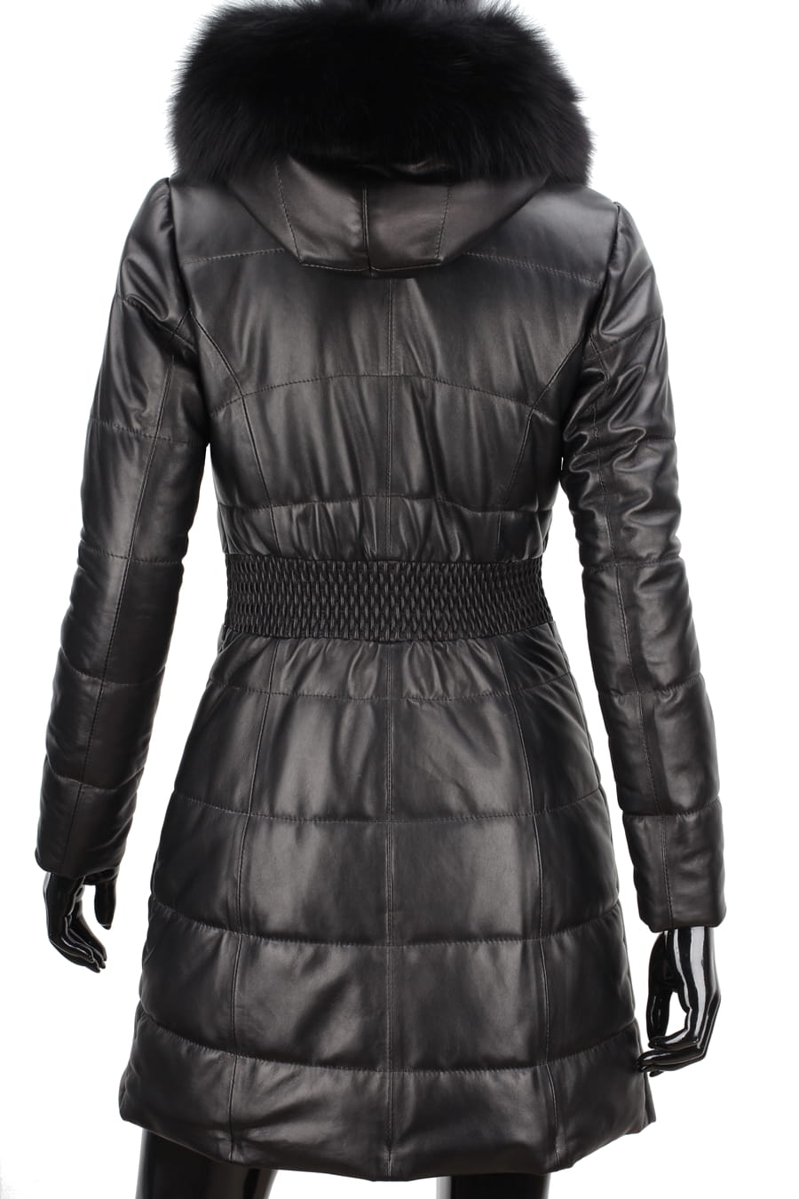 SYL450_1 - czarny pikowany płaszcz skórzany damski z futerkiem DORJAN