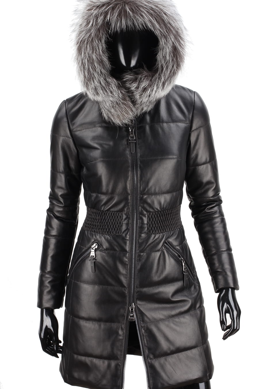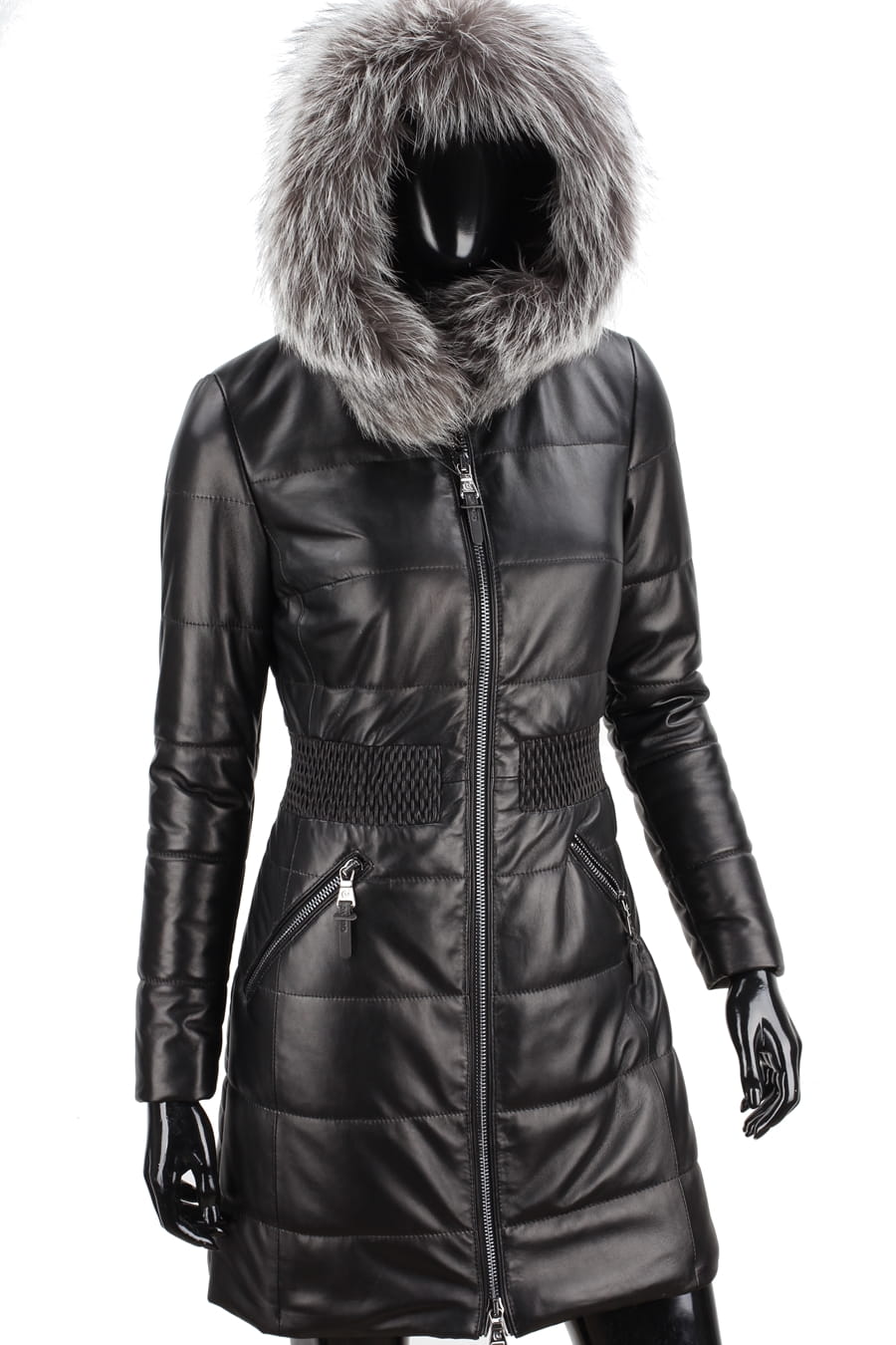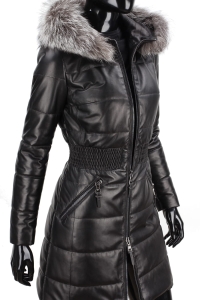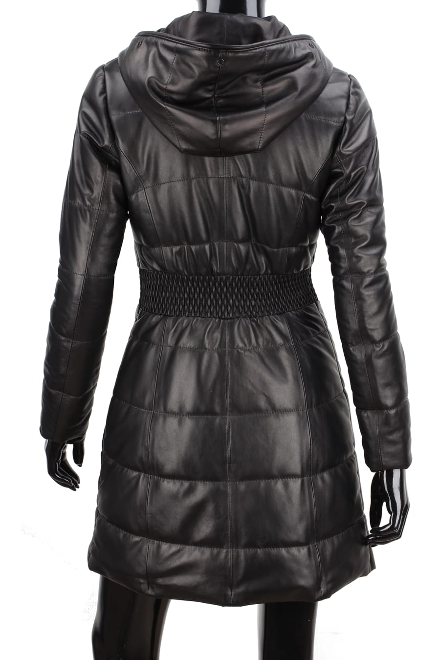 SYL450_2 - ciepły płaszcz skórzany pikowany damski z kapturem DORJAN