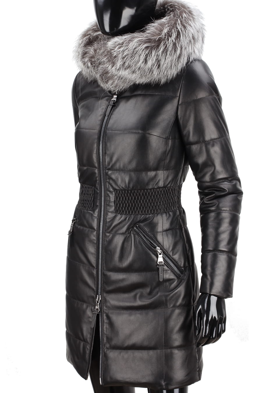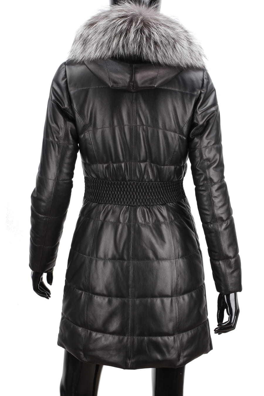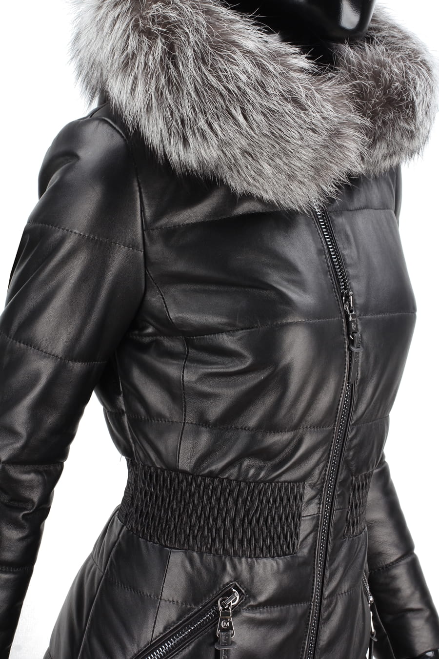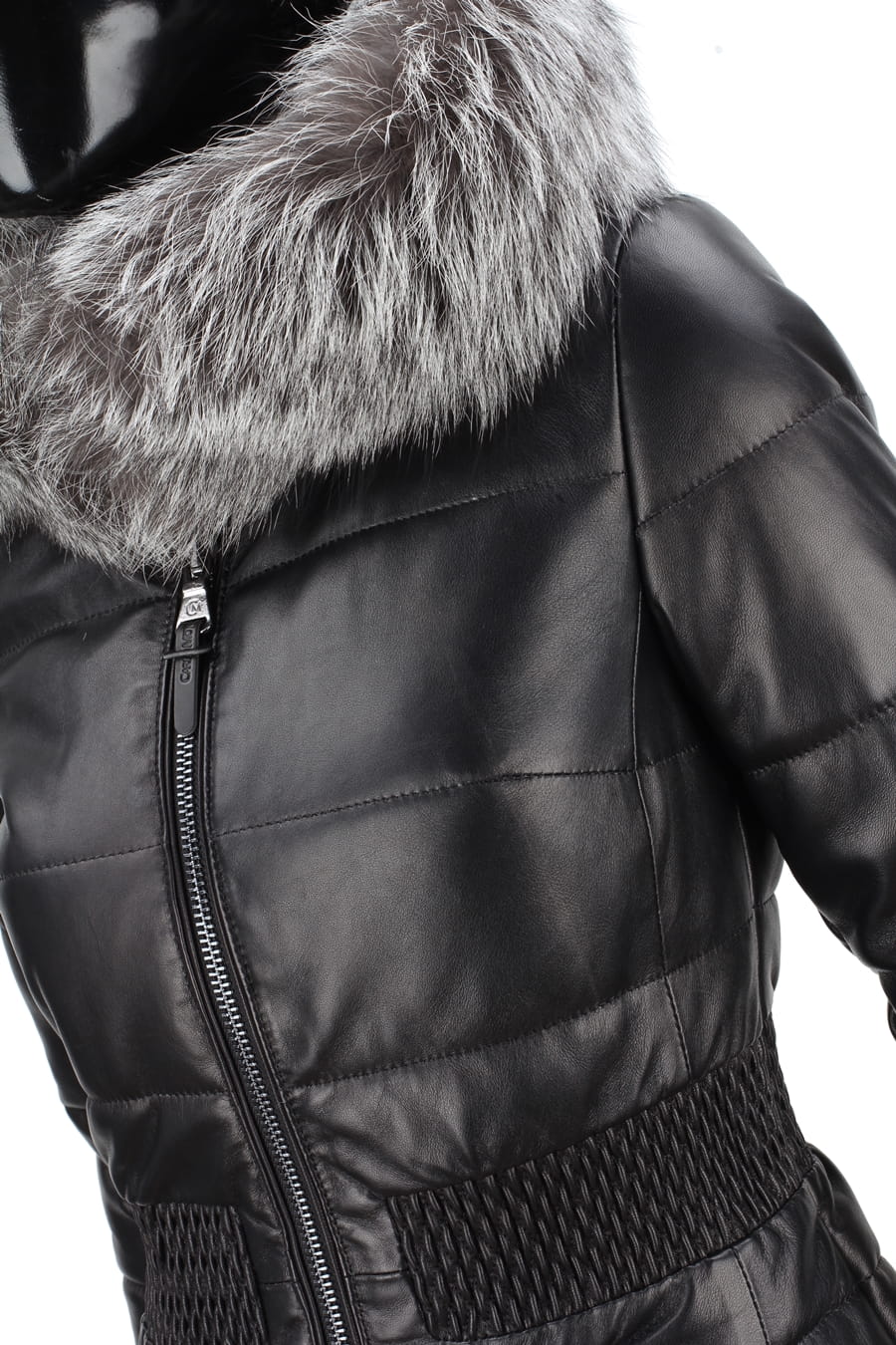 SYL450_2 - ciepły płaszcz skórzany pikowany damski z kapturem DORJAN