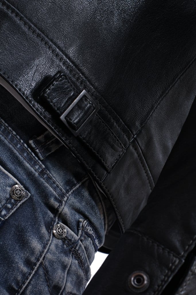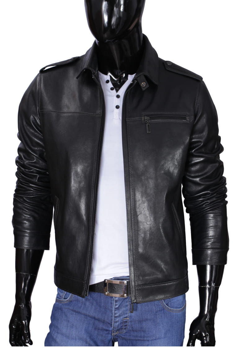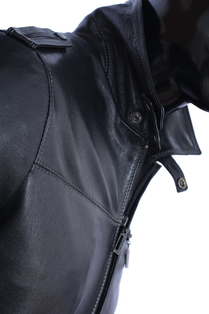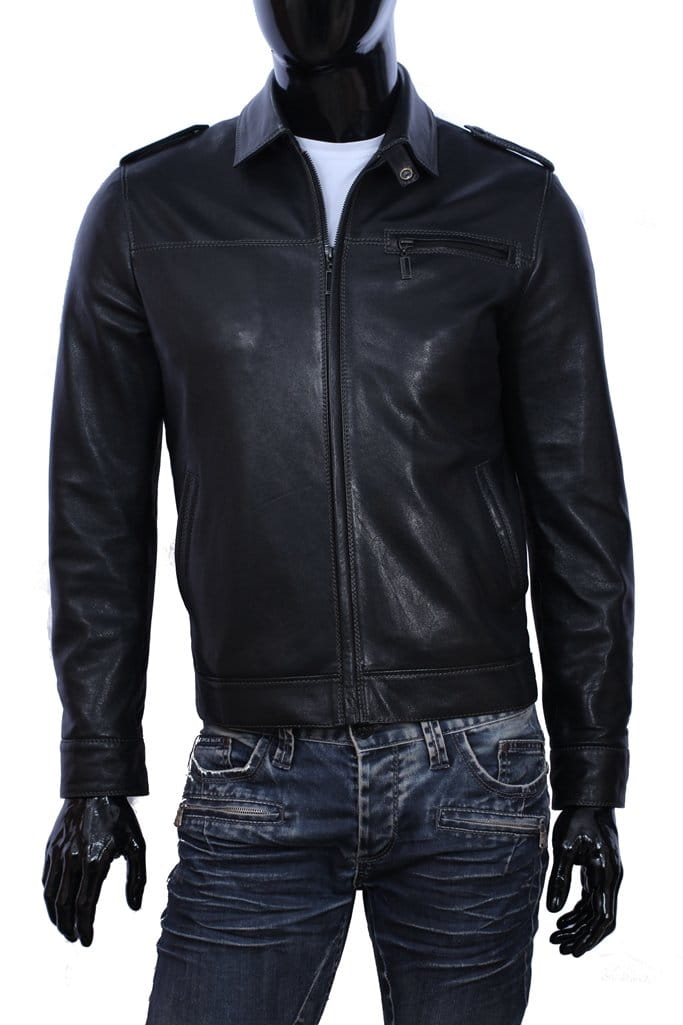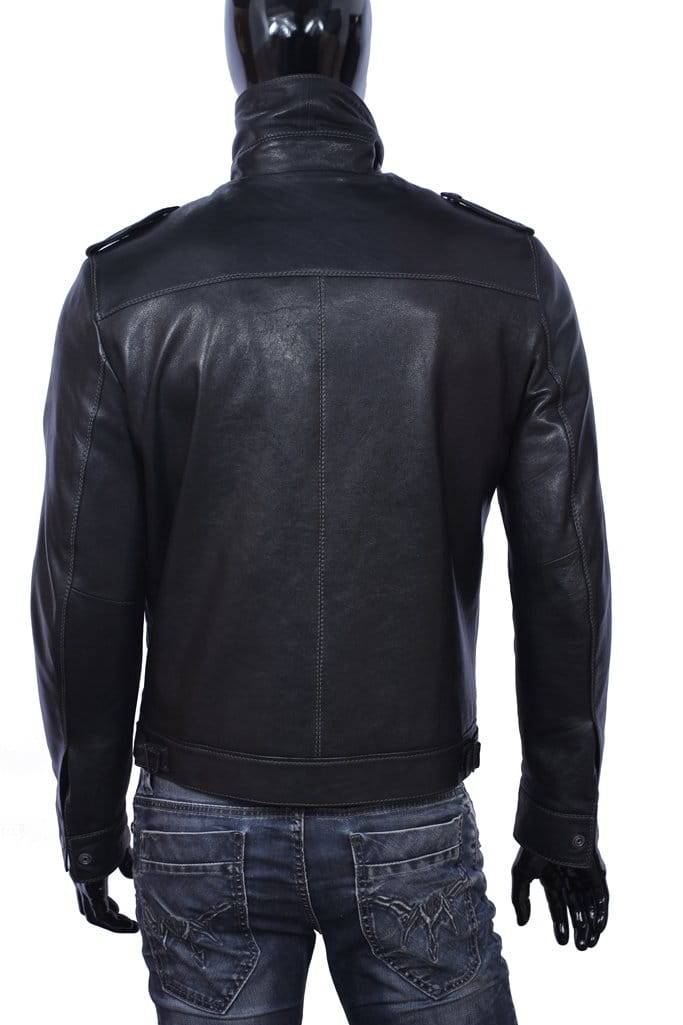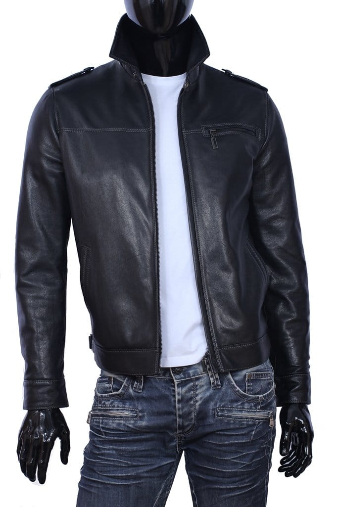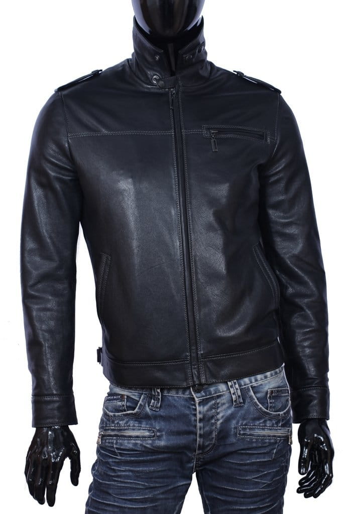 TOM950 - Kurtka skórzana męska z pagonami na ramionach DORJAN