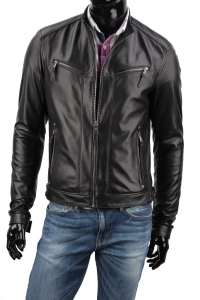 TYS450 - Skórzana kurtka męska typu biker z naturalnej skóry DORJAN
