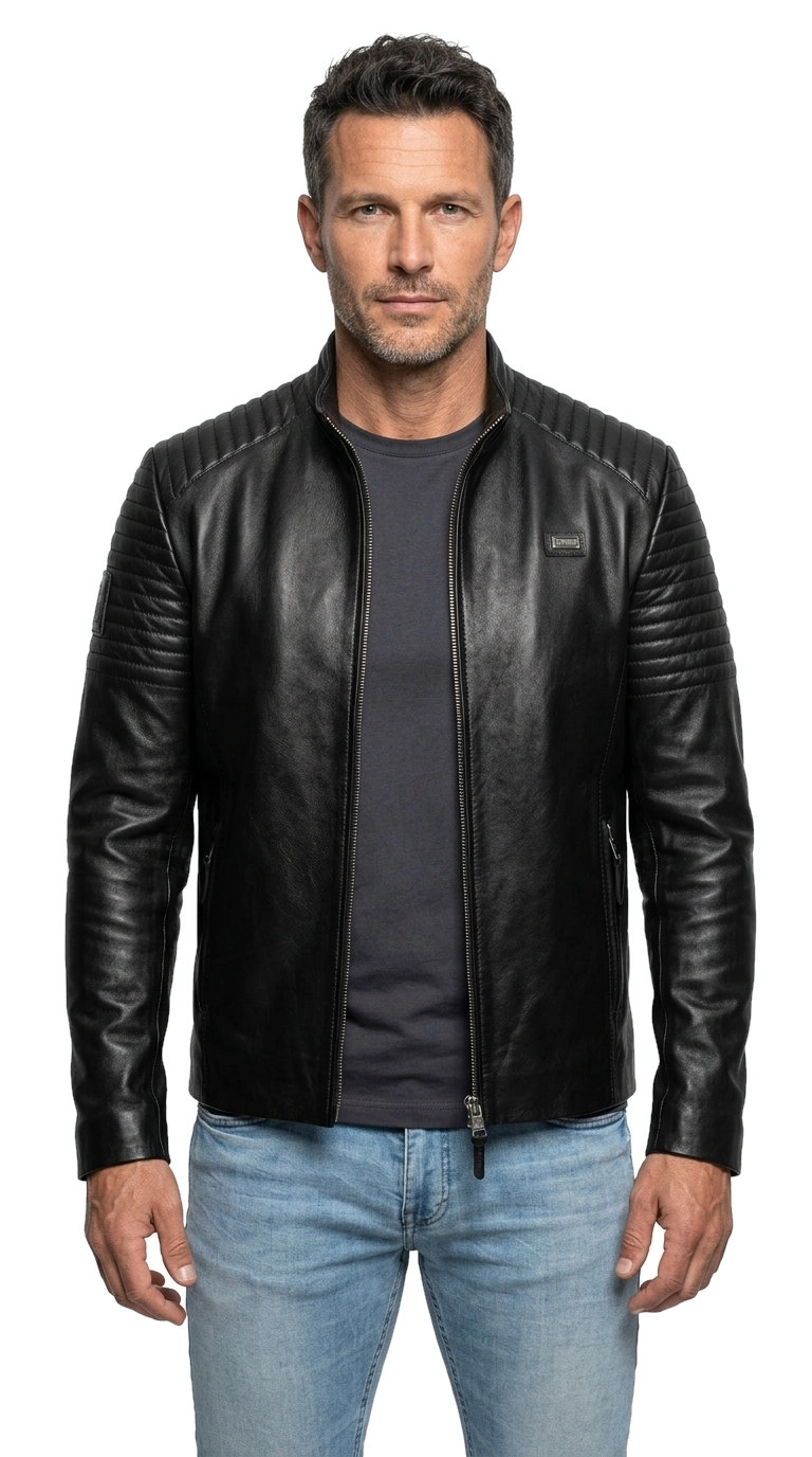 Uniwersalna kurtka skórzana męska z czarnej skóry - rozmiar 3XL - Wyprzedaż DORJAN