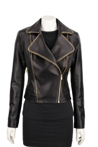 VIK450G - Ramoneska skórzana damska ze złotymi zamkami DORJAN