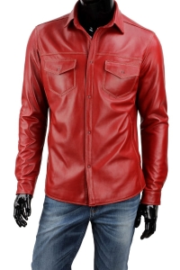 WIL467 - Szkarłatna koszula skórzana męska z owczej skóry DORJAN